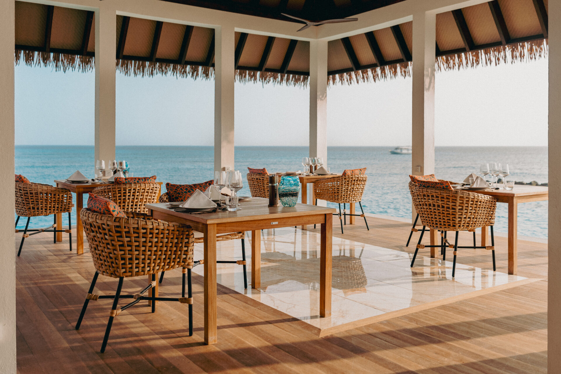 Discover Thaana, where every dish is a masterpiece crafted from the finest ingredients. Experience the essence of Mediterranean cuisine in a tranquil, stylish ambiance with unparalleled ocean vistas, creating an exclusive dining retreat for the discerning palate.